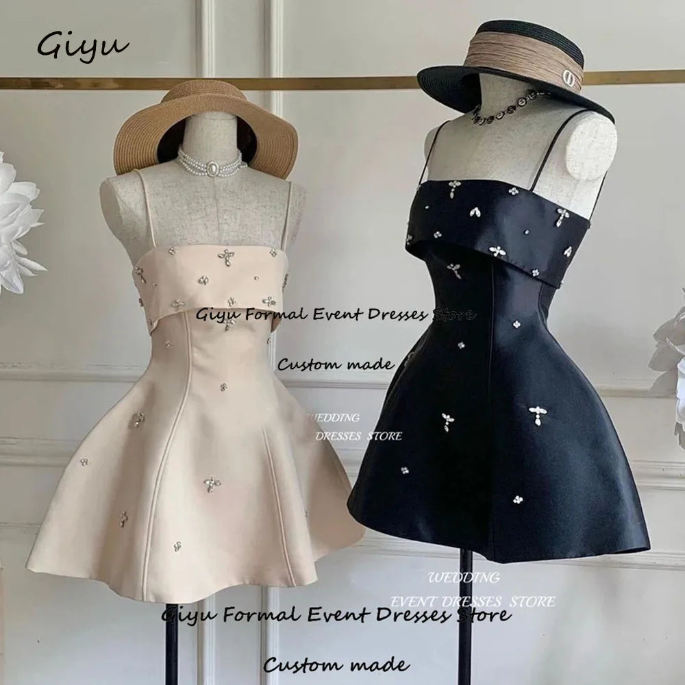 Mini Short Wedding Party Dresses Spaghetti Straps A-line Bridal Gown Shiny Beads Formal Occasion Dresses Above Knee